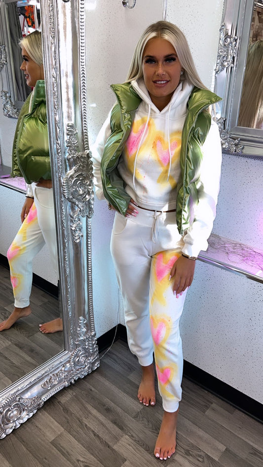 Made With Love Ruched Hoodie Set - Lemon hearts and leggings