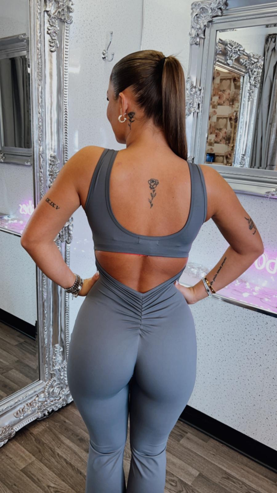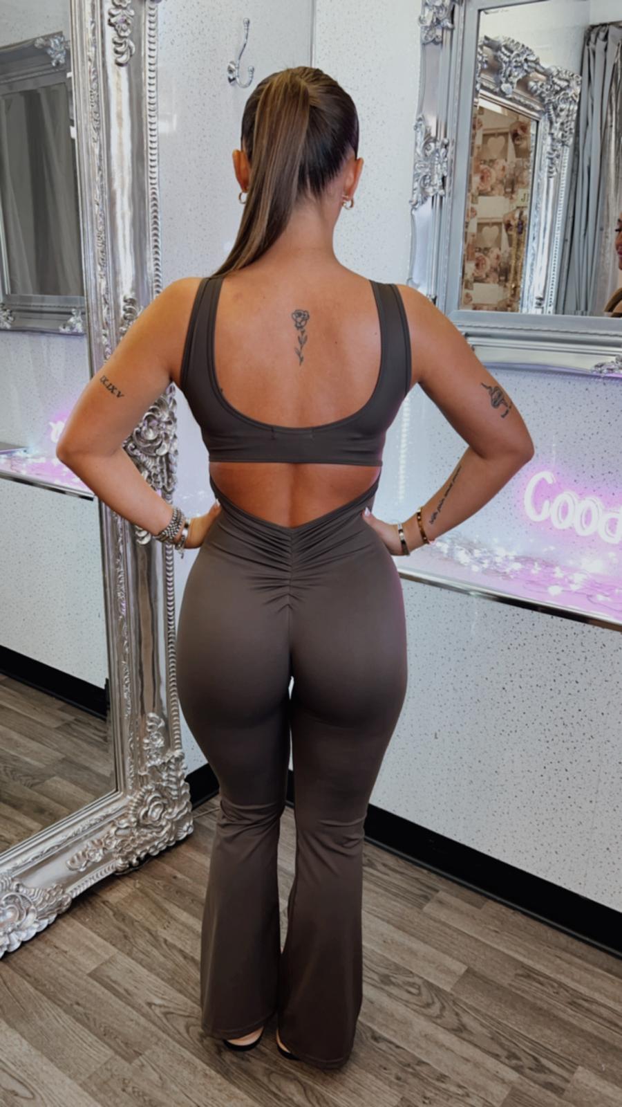 Achieve a flattering silhouette with our Ruched Bum Flared Leg Jumpsuit. The ruched bum highlights your curves while the flared leg elongates your legs. This jumpsuit is perfect for any occasion, providing comfort and style.